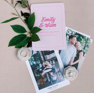 Pairing the classic Brooklyn imagery from their engagement shoot with this pop of pink had their guests commenting on how spot on the aesthetic was for this bride and groom. I loved being able to capture their fun, bubbly energy simply by adding color where you’d least expect it. The spot gloss finish and rounded corners on the invitations made them extra special.